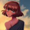 She's a whole 5'7 in terms of height, a medium tan skin tone, and short brunette hair. Fairly slender, not very curvy. Her most notable feature is her blue-green eyes. Her alien skin mark lays on the back of her neck.